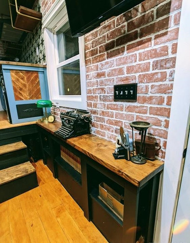 Belgium wall paper runs the length of the tiny house as well as a brick finish that gives the home a luxurious European apartment feel. A Oversized deck for extra entertaining and lounge space. Wiring is run for a split A/C Unit and plumbing is ready for a washer and drier combo. Tiny house comes with the 15X25 floating deck (optional) Buyer is responsible for moving the tiny house and deck. This can be easily done with a Ford F250 or similar.